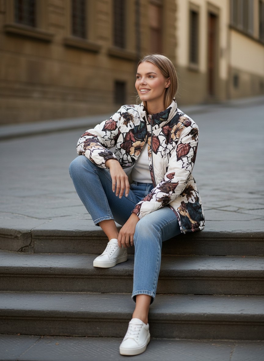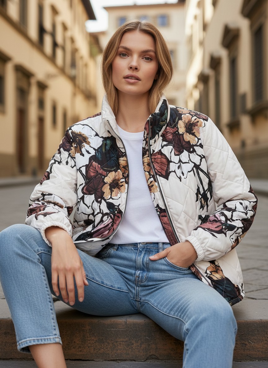 Ένα κομψό και ανάλαφρο μπουφανάκι που προσθέτει ρομαντική και κοριτσίστικη διάθεση σε κάθε εμφάνιση. Το λευκό του χρώμα σε συνδυασμό με το όμορφο εμπριμέ σχέδιο με λουλούδια δημιουργεί ένα φρέσκο και ανοιξιάτικο look που ξεχωρίζει.