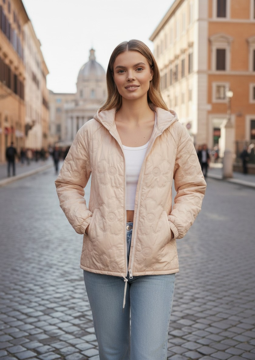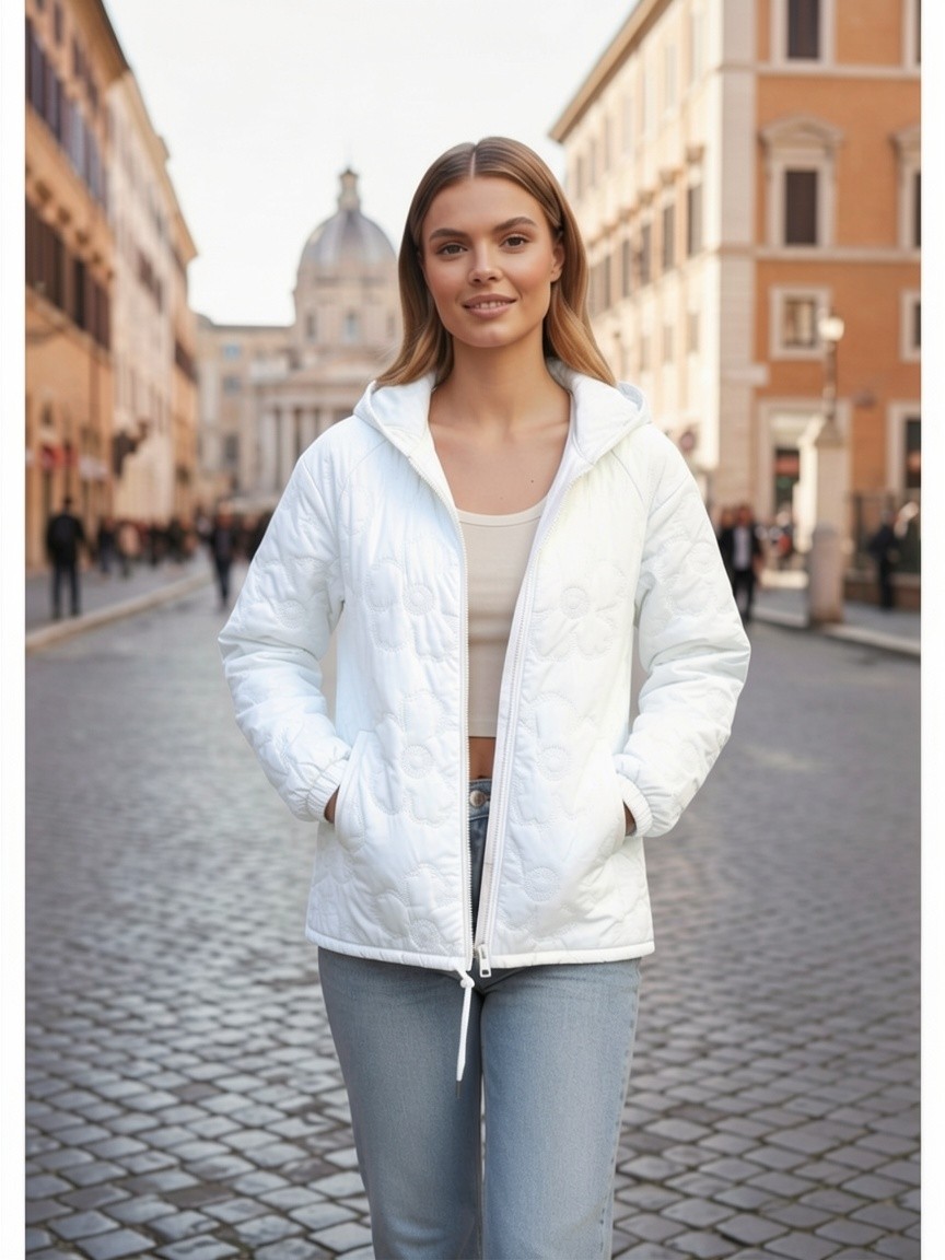 ✨Λεπτό και άνετο onesize μπουφανάκι με υπέροχες διακοσμητικές μαργαρίτες, ιδανικό για τις ανοιξιάτικες μέρες με ήλιο και δροσερό αεράκι. Διαθέτει κουκούλα, πρακτικές τσέπες και κορδόνι στο τελείωμα ώστε να το προσαρμόζεις και να το κάνεις πιο σφιχτό για τέλεια εφαρμογή και πιο stylish look.