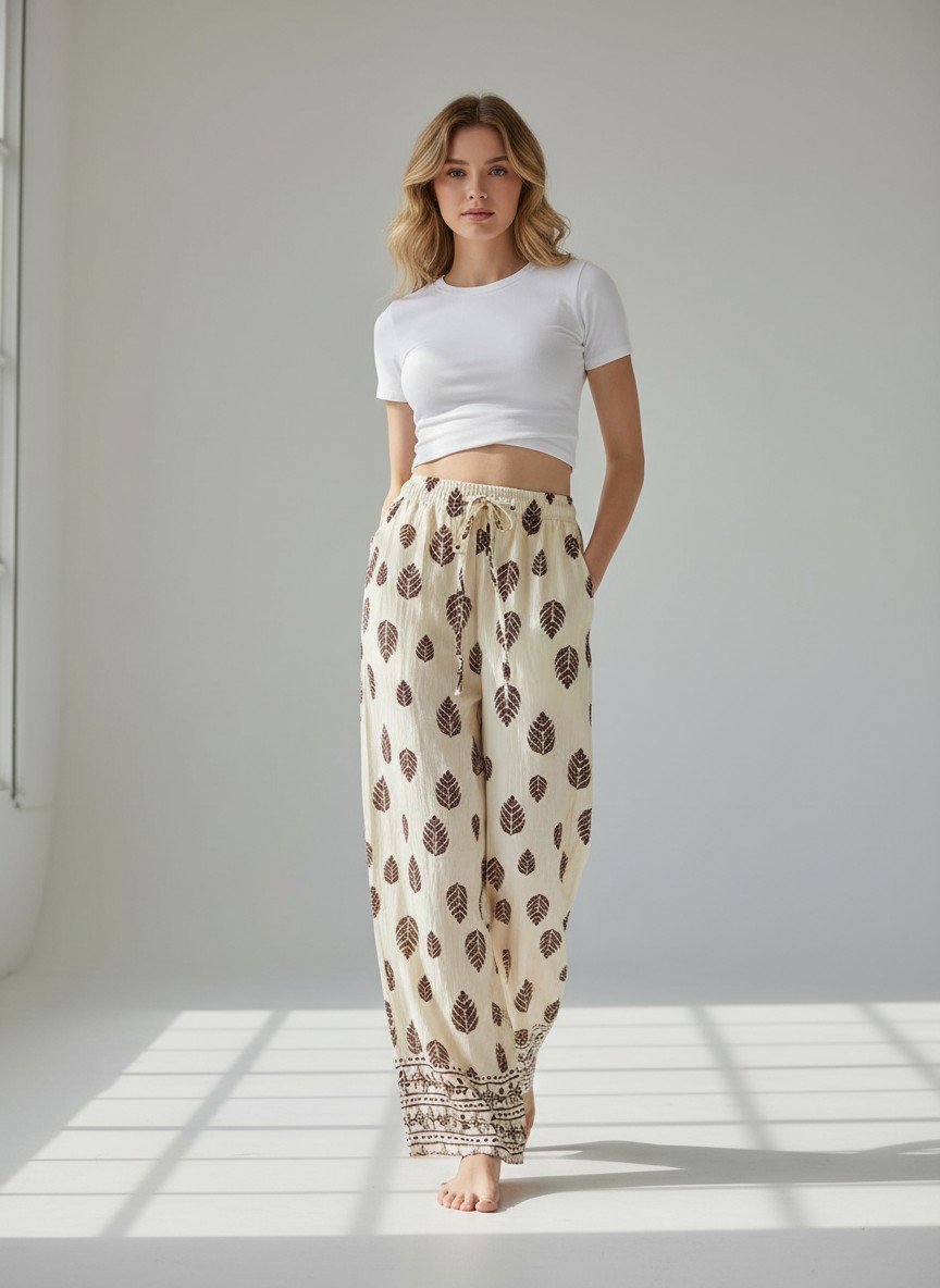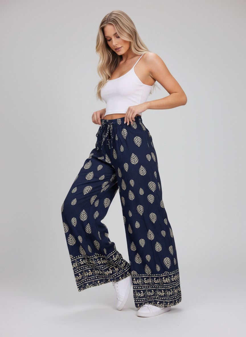 Αφεθείτε στην απόλυτη άνεση με αυτή την αέρινη παντελόνα ! Κατασκευασμένη από ελαφρύ, αναπνεύσιμο ύφασμα, είναι η ιδανική επιλογή για τις ζεστές μέρες.