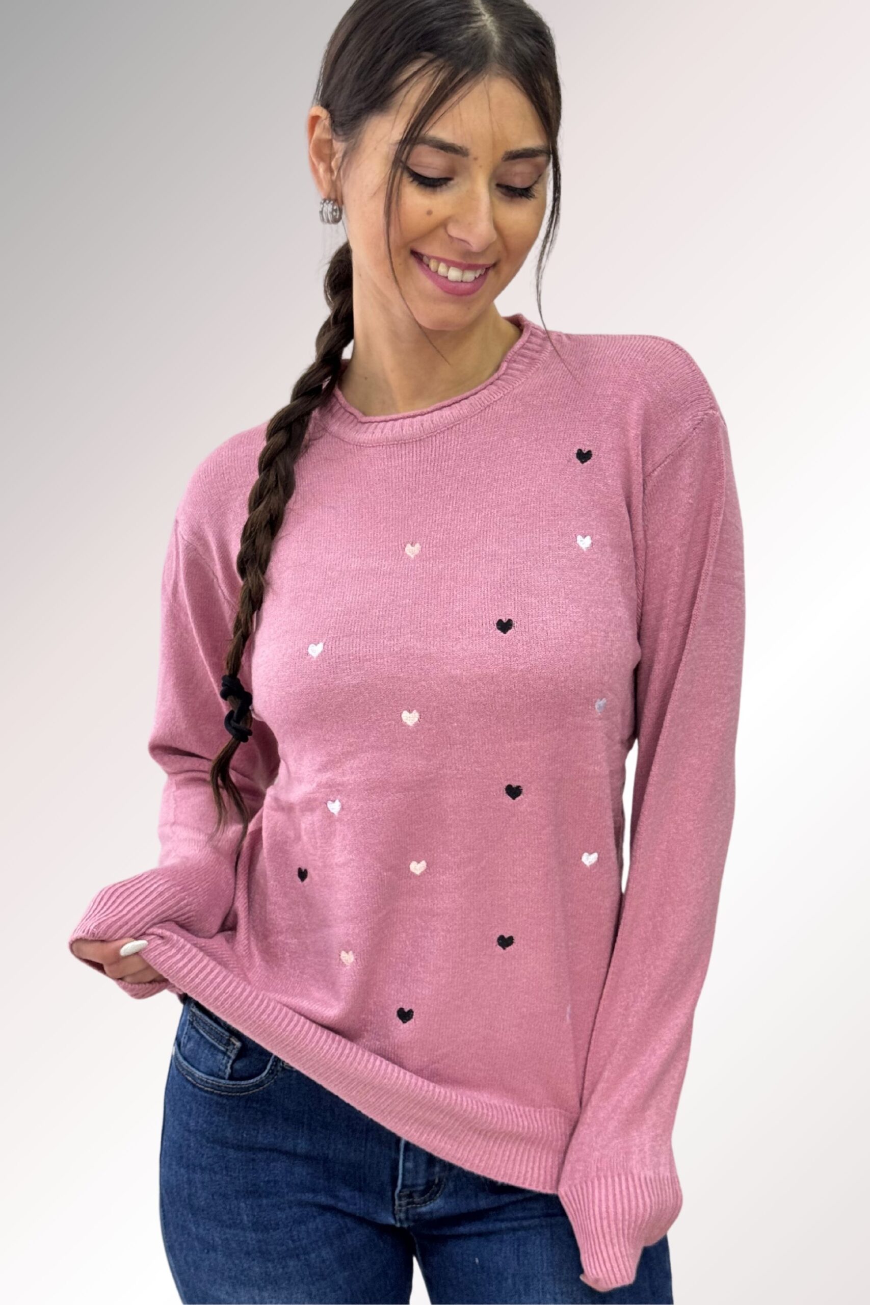 Απαλό και ζεστό πλεκτό με χαριτωμένο κέντημα καρδούλες. Διαθέτει άνετη εφαρμογή για καθημερινή χρήση, ενώ το μαλακό του ύφασμα προσφέρει απόλυτη άνεση και στυλ. Ιδανικό για cozy φθινοπωρινές και χειμωνιάτικες εμφανίσεις!💖
