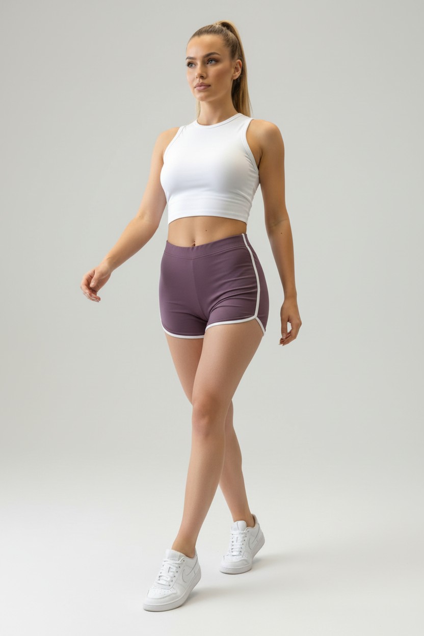 Ελαστικό σορτς με διακοσμητική ρίγα. Iδανικό για αθλητικό outfit ή γυμναστική.