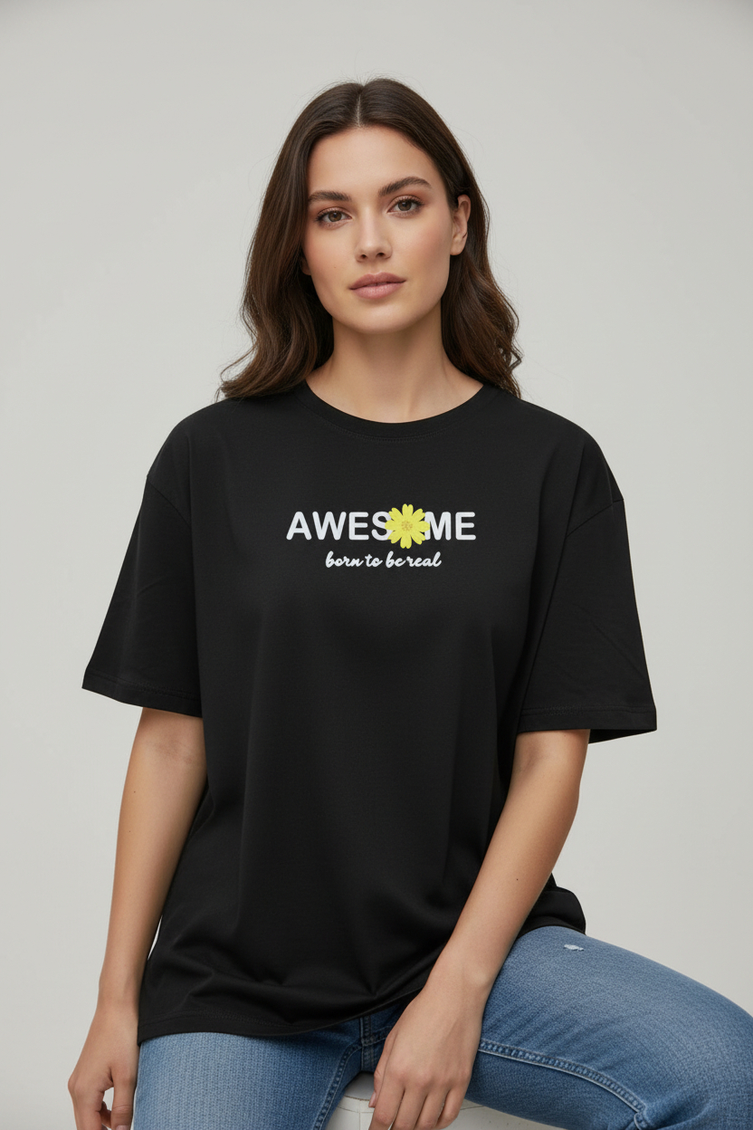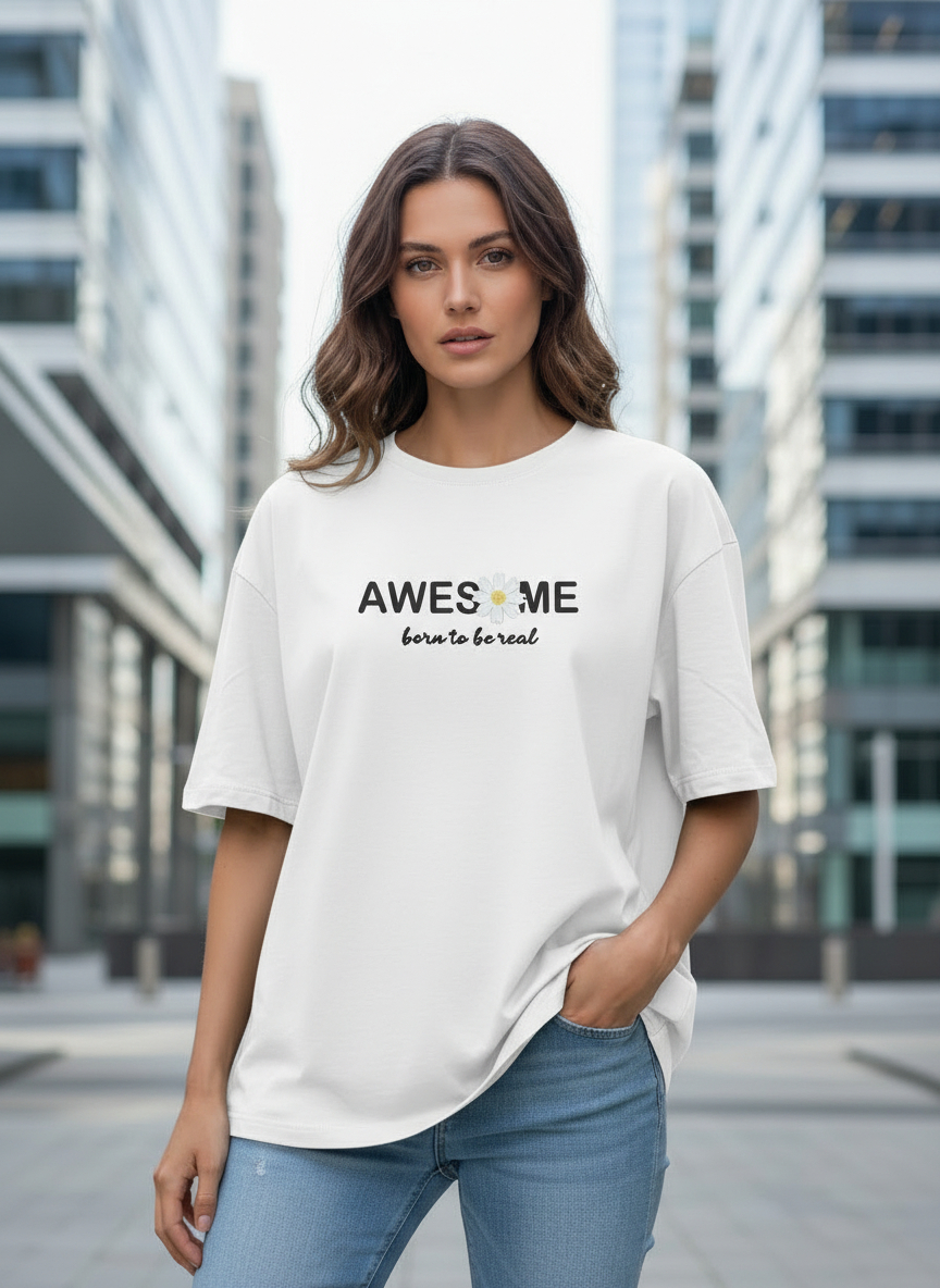 Το μπροστινό τύπωμα “AWESOME – Born to be Real” εκφράζει αυτοπεποίθηση και αυθεντικότητα, κάνοντας κάθε εμφάνιση να ξεχωρίζει.
