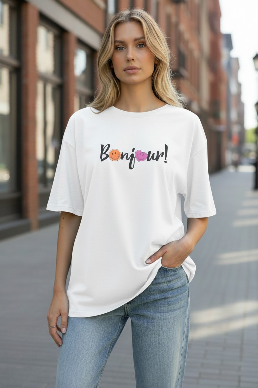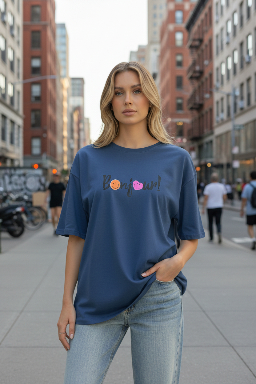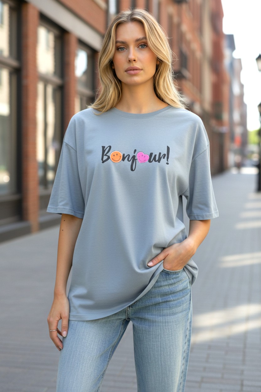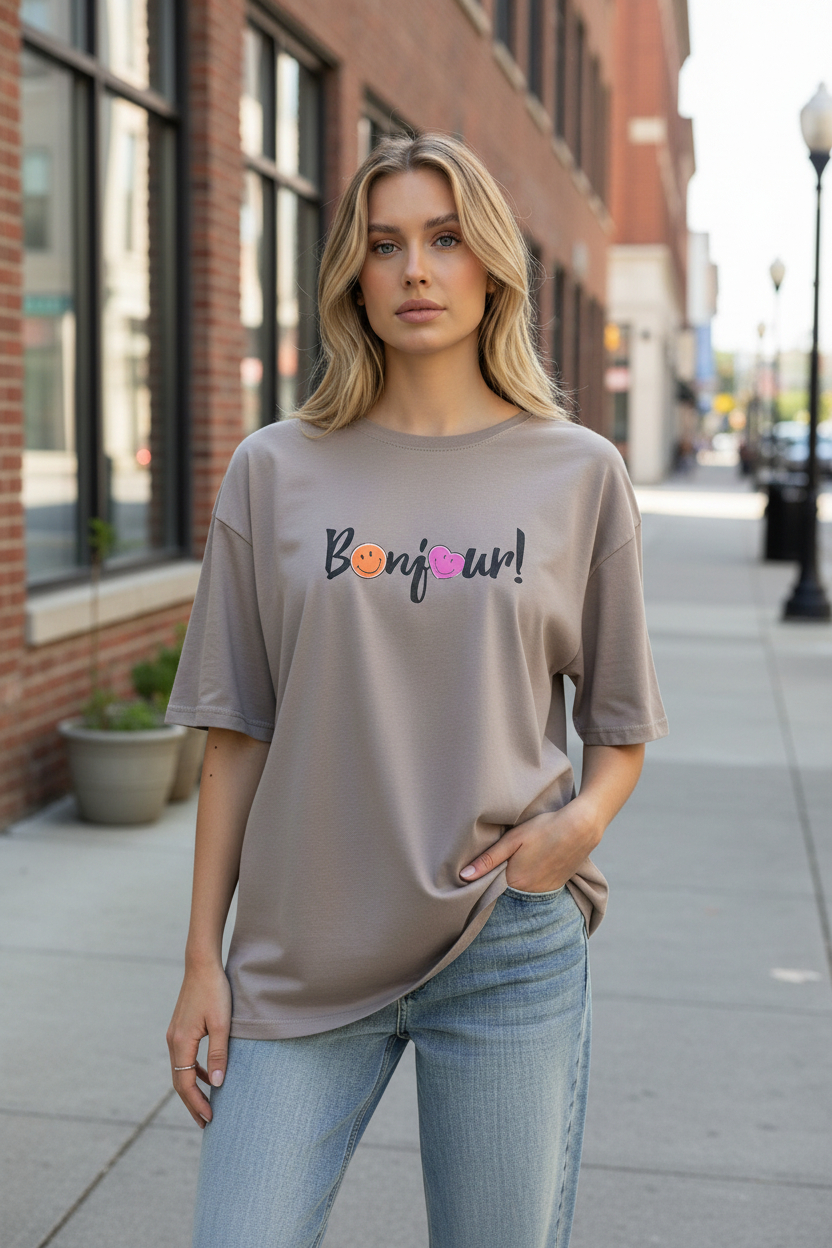 Το τύπωμα “Bonjour!” στο μπροστινό μέρος προσθέτει μια κομψή, minimal πινελιά που ταιριάζει σε κάθε καθημερινή εμφάνιση.