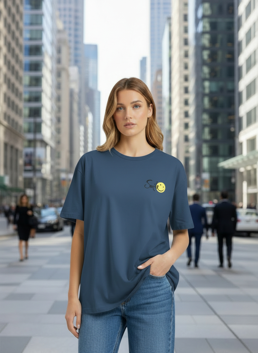 Με το μήνυμα “Smile” στο μπροστινό μέρος, γίνεται το απόλυτο κομμάτι για looks γεμάτα αισιοδοξία και ενέργεια. Η απαλή υφή του από 100% βαμβάκι πεννιέ χαρίζει φυσική άνεση και δροσερή αίσθηση όλη μέρα.
