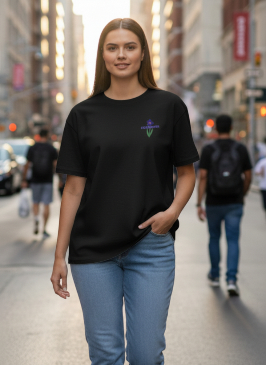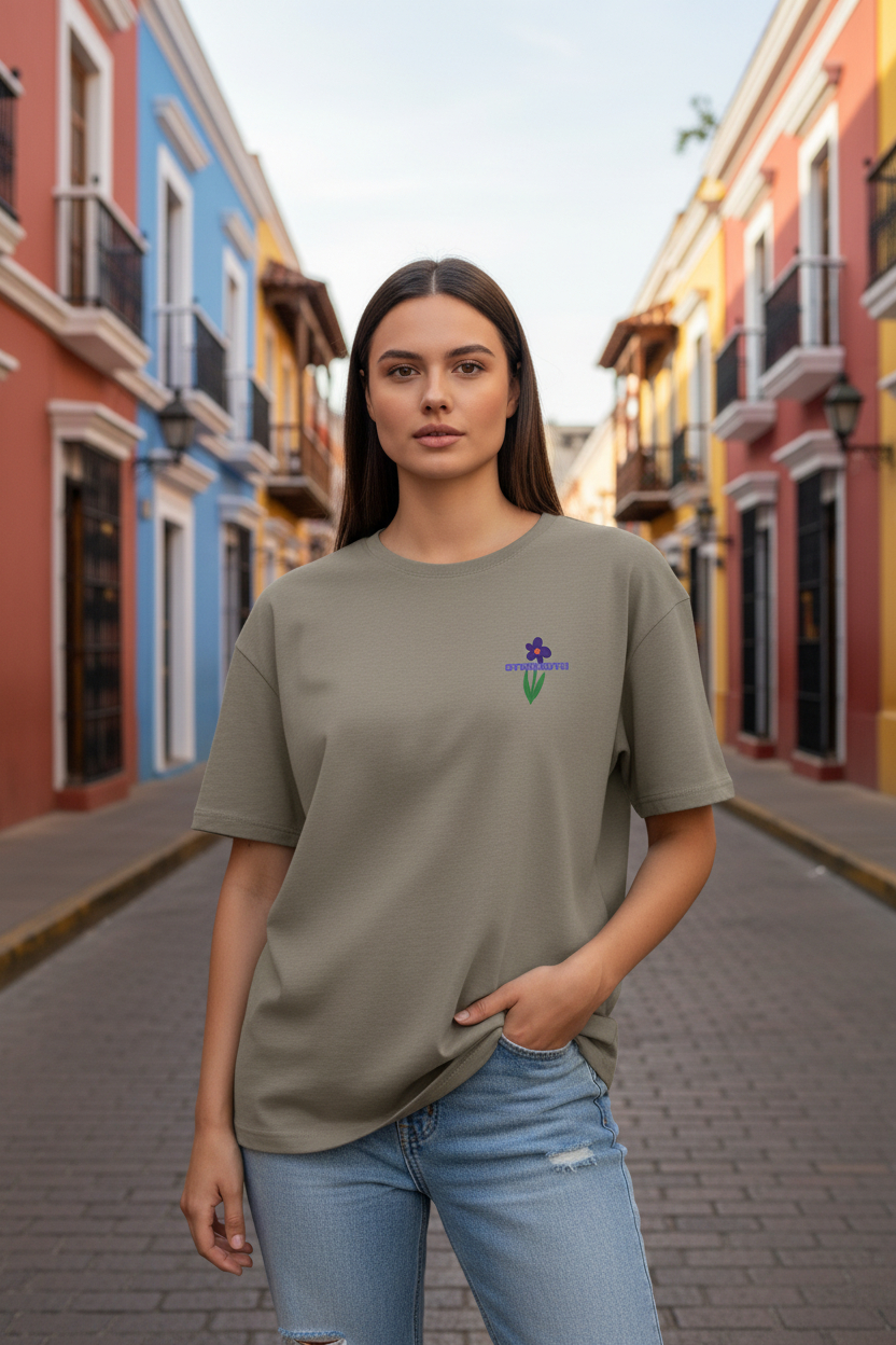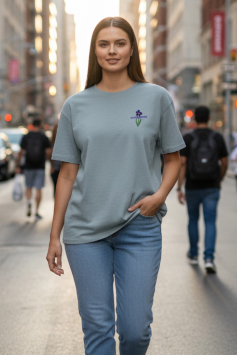 Το μπροστινό τύπωμα “Strength” συνοδεύεται από ένα κομψό λουλούδι, δημιουργώντας ένα look που συνδυάζει αισιοδοξία και στιλιστική λεπτότητα.