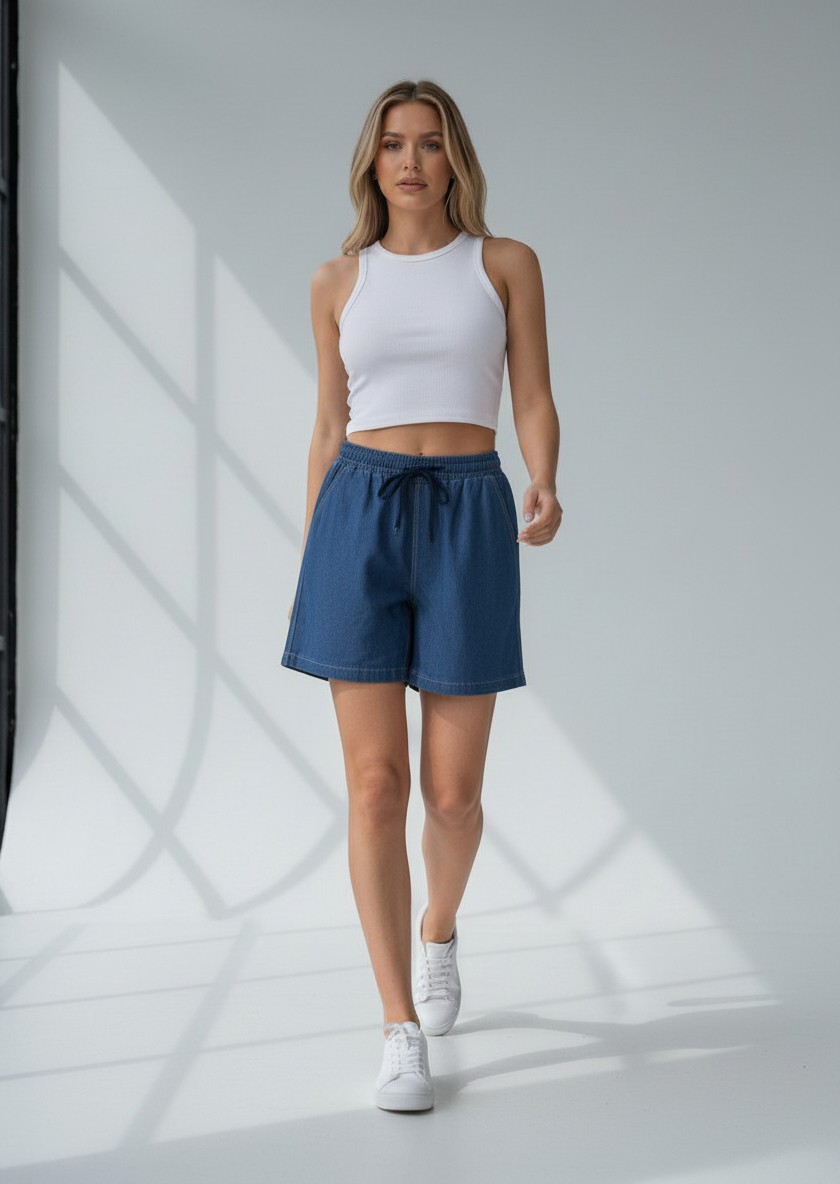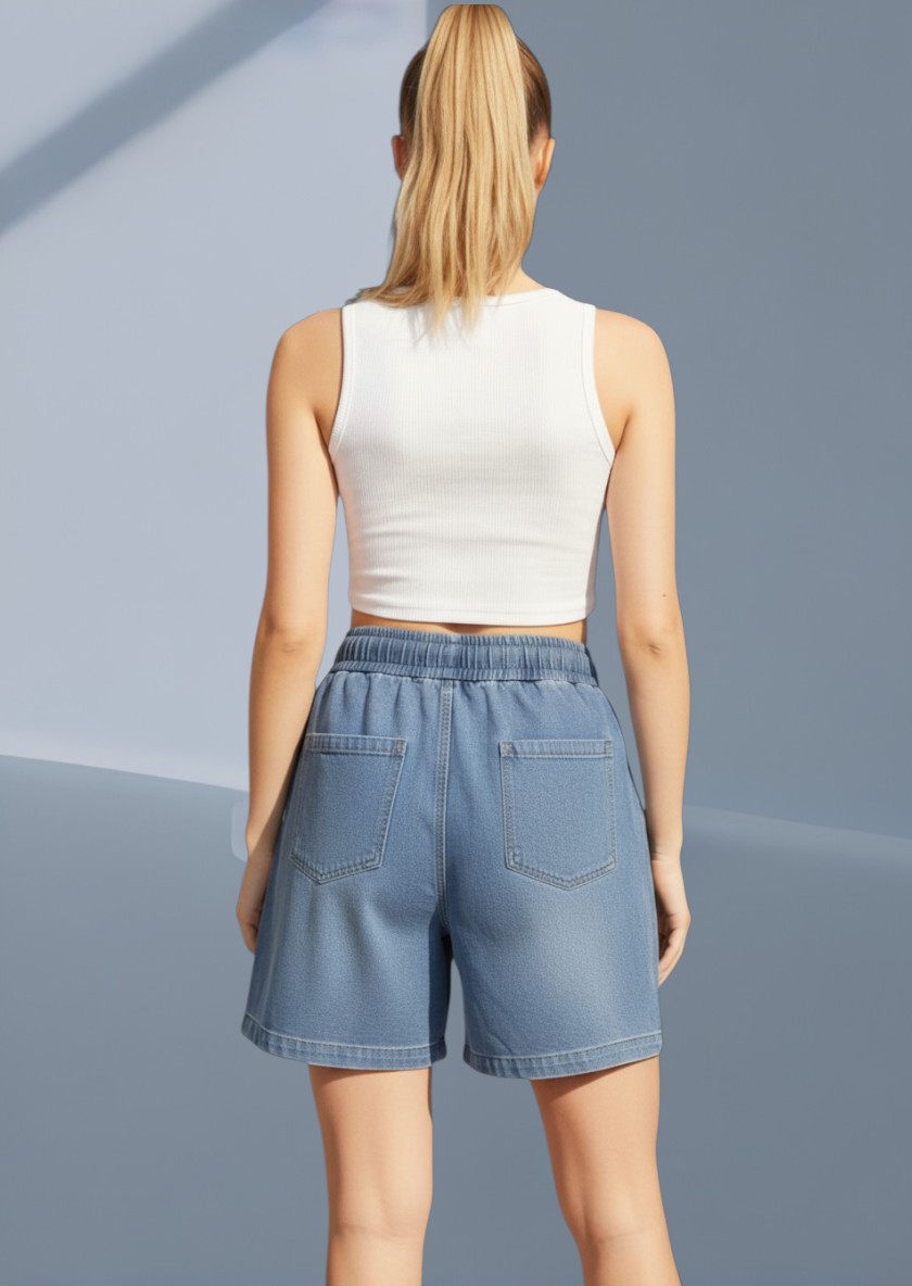 Βερμούδα τζιν ιδανική για τις καλοκαιρινές σου εμφανίσεις, που συνδυάζει άνεση και στυλ. Διαθέτει πρακτικές τσέπες στο πίσω μέρος για καθημερινή χρήση, ενώ μπροστά ξεχωρίζει με το λάστιχο και το κορδόνι στη μέση που εξασφαλίζουν τέλεια εφαρμογή και ευκολία στην κίνηση.