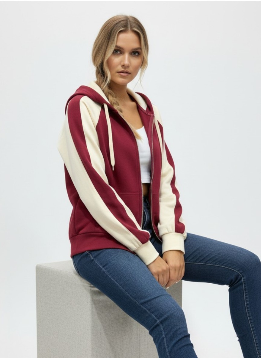 Αυτή η διχρωμία φούτερ ζακέτα με κουκούλα είναι φτιαγμένη από εξαιρετικo φούτερ βισκόζη που «αγκαλιάζει» το σώμα,προσφέροντας cozy αίσθηση όλη μέρα.