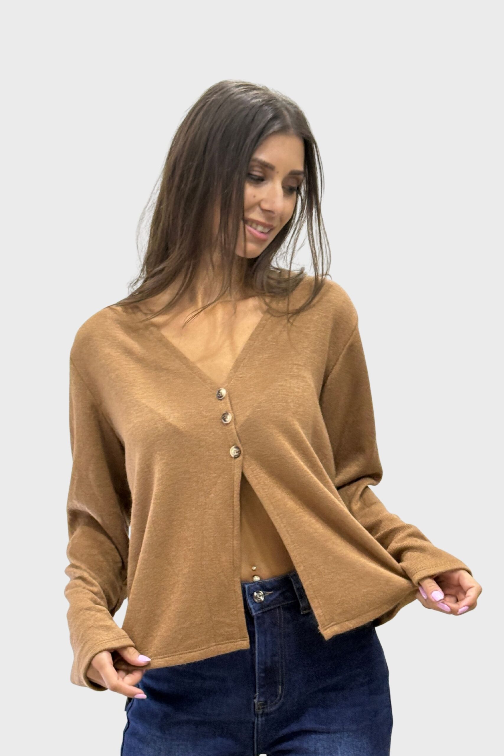 Με διαχρονική γραμμή και κουμπιά στο μπροστινό μέρος, αυτή η ζακέτα προσφέρει τη ζεστασιά που χρειάζεσαι χωρίς να θυσιάζεις το στυλ σου.